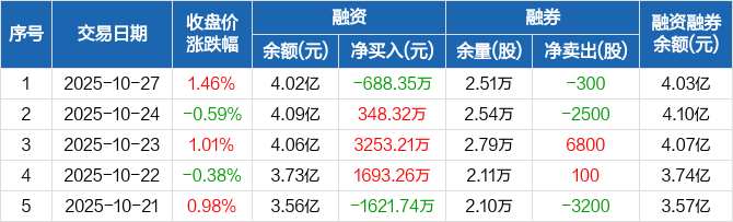 川恒股份:融资净偿还688.35万元,融资余额4.02亿元(10-27)