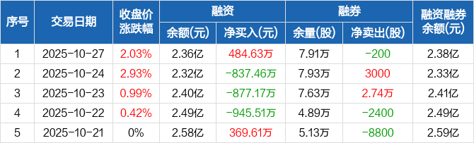 国城矿业:融资净买入484.63万元,融资余额2.36亿元(10-27)