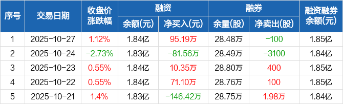 本钢板材:融资净买入95.19万元,融资余额1.84亿元(10-27)