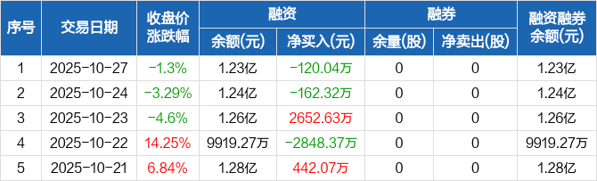 亨迪药业:融资净偿还120.04万元,融资余额1.23亿元(10-27)