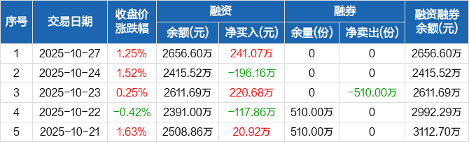A500ETF易方达:融资净买入241.07万元,融资余额2656.6万元(10-27)