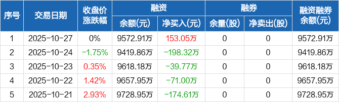 中锐股份:融资净买入153.05万元,融资余额9572.91万元(10-27)