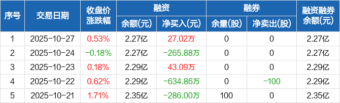中粮科工:融资净买入27.02万元,融资余额2.27亿元(10-27)