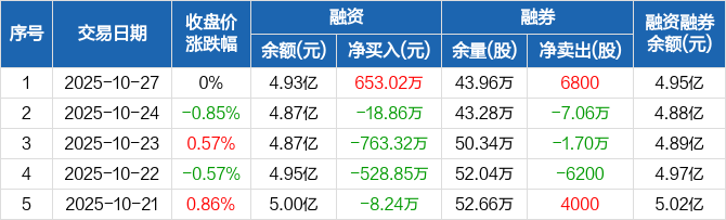 南极电商:融资净买入653.02万元,融资余额4.93亿元(10-27)