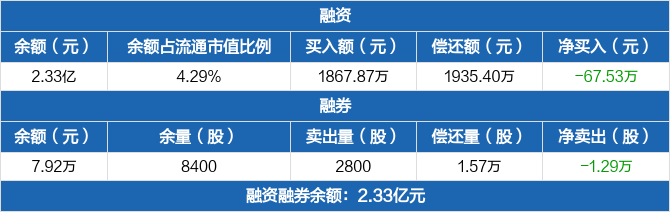 楚天科技:融资净偿还67.53万元,融资余额2.33亿元(10-27)