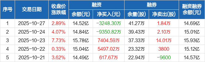 大族激光:融资净偿还3248.3万元,融资余额14.52亿元(10-27)