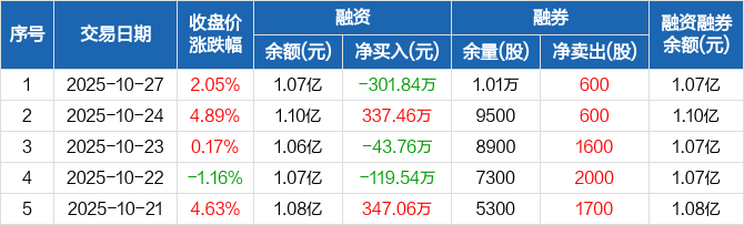 百普赛斯:融资净偿还301.84万元,融资余额1.07亿元(10-27)