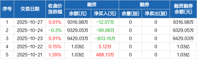 集泰股份:连续3日融资净偿还累计945.21万元(10-27)