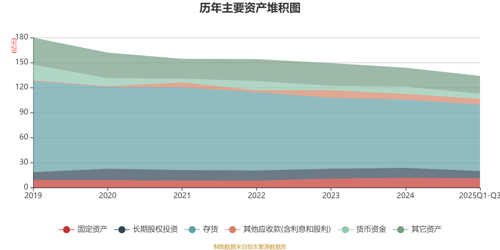 资产重大变化方面,截至2025年三季度末,公司存货较上年末减少2.62%,占公司总资产比重上升2.58个百分点;长期股权投资较上年末减少25.84%,占公司总资产比重下降1.68个百分点;货币资金较上年末减少26.58%,占公司总资产比重下降1.26个百分点;其他流动资产较上年末减少34.14%,占公司总资产比重下降0.71个百分点。