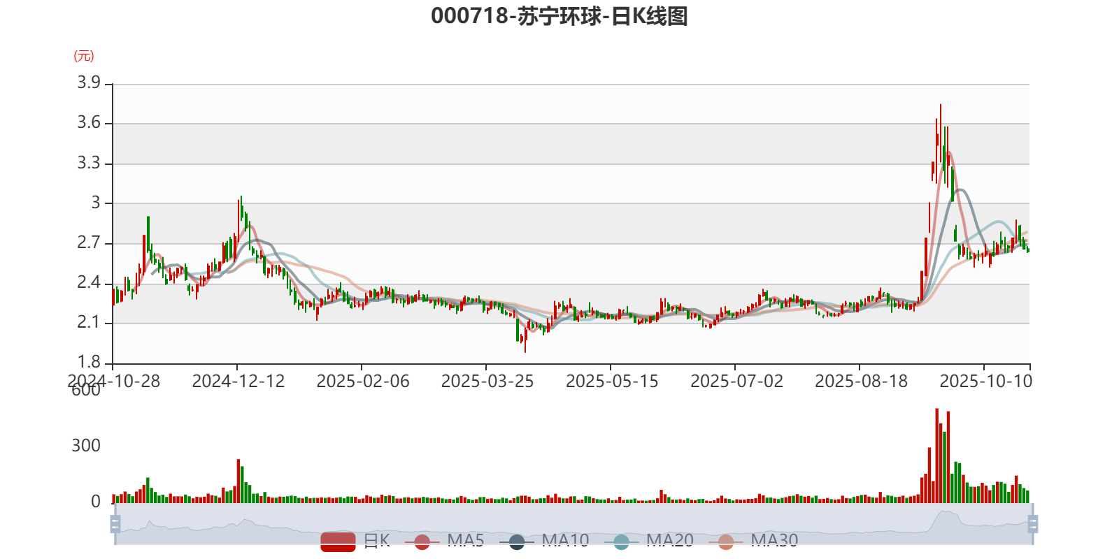 三季报显示,2025年三季度末的公司十大流通股东中,持股最多的为苏宁环球集团有限公司,占比17.464%。在具体持股比例上,华泰尊享稳进56号单一资产管理计划、香港中央结算有限公司持股有所上升,成长共赢员工持股计划、孙天豪、阿杏延安26号私募证券投资基金持股有所下降。