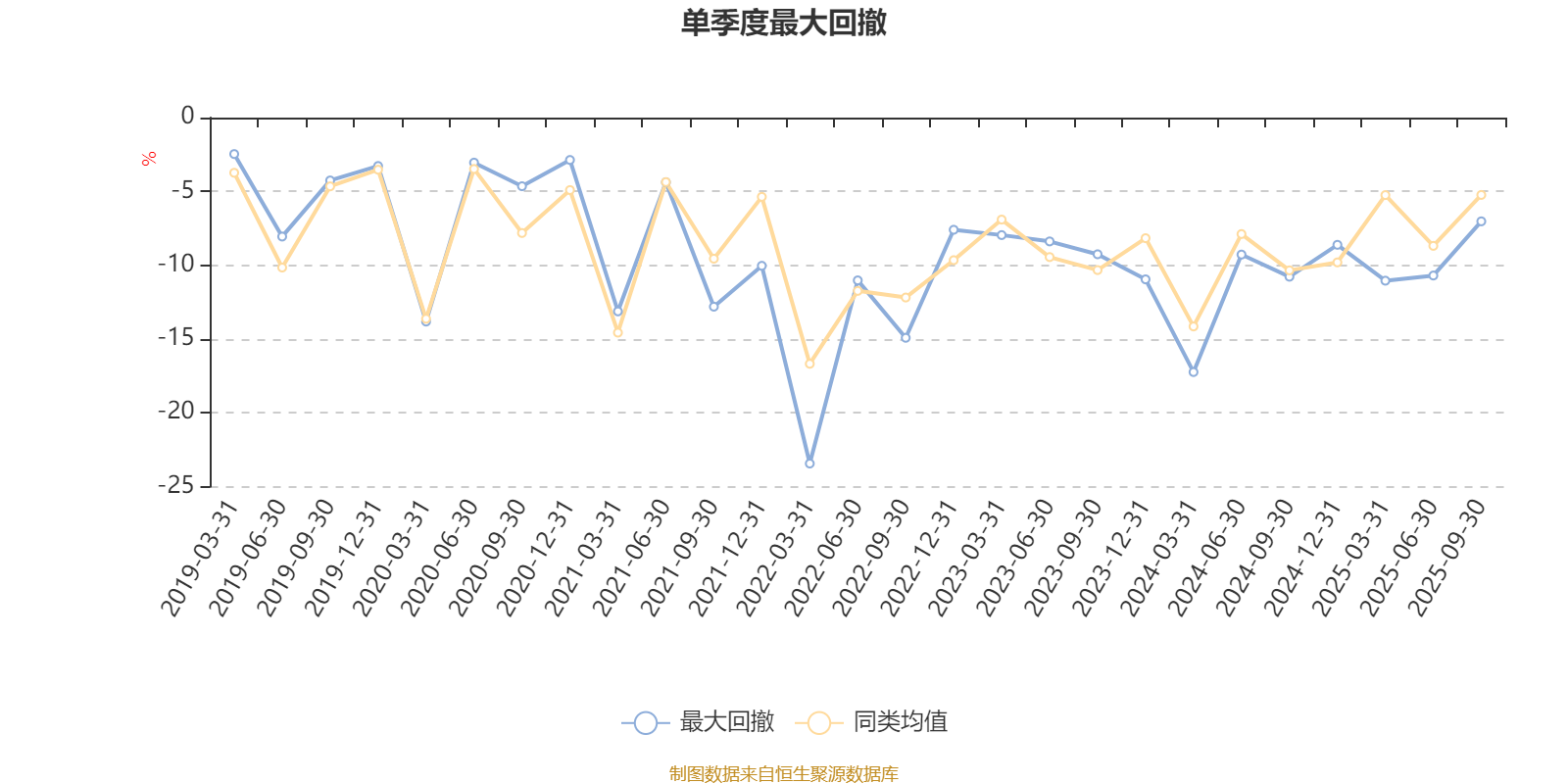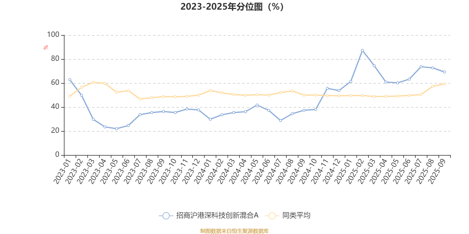 通过所选区间该基金净值增长率分位图,可以观察该基金与同类基金业绩比较情况。图为坐标原点到区间内某时点的净值增长率在同类基金中的分位数。