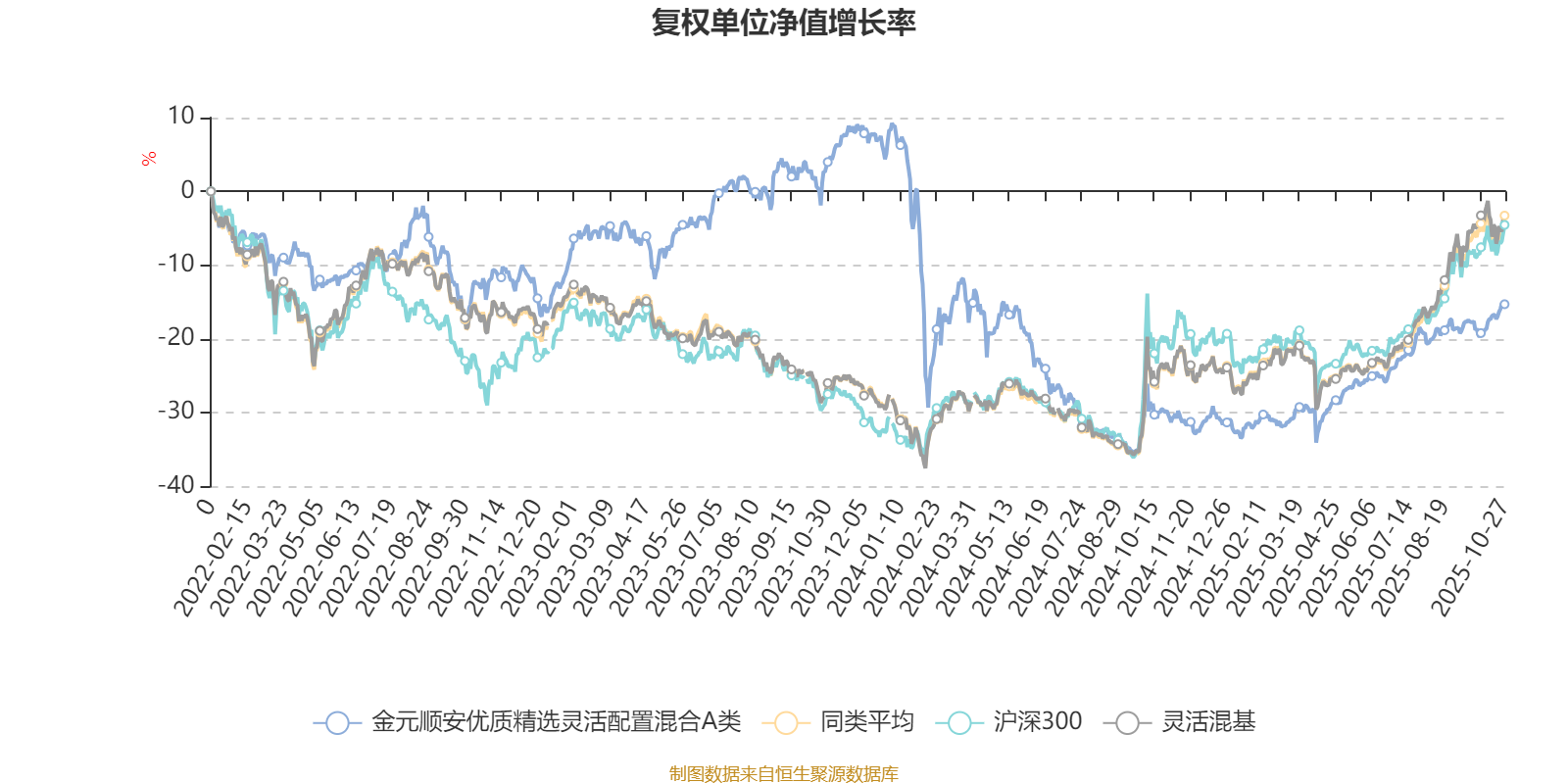 截至10月27日,金元顺安优质精选灵活配置混合A类近三个月复权单位净值增长率为4.24%,位于同类可比基金985/1287;近半年复权单位净值增长率为18.13%,位于同类可比基金822/1287;近一年复权单位净值增长率为20.79%,位于同类可比基金680/1287;近三年复权单位净值增长率为-3.31%,位于同类可比基金1046/1286。