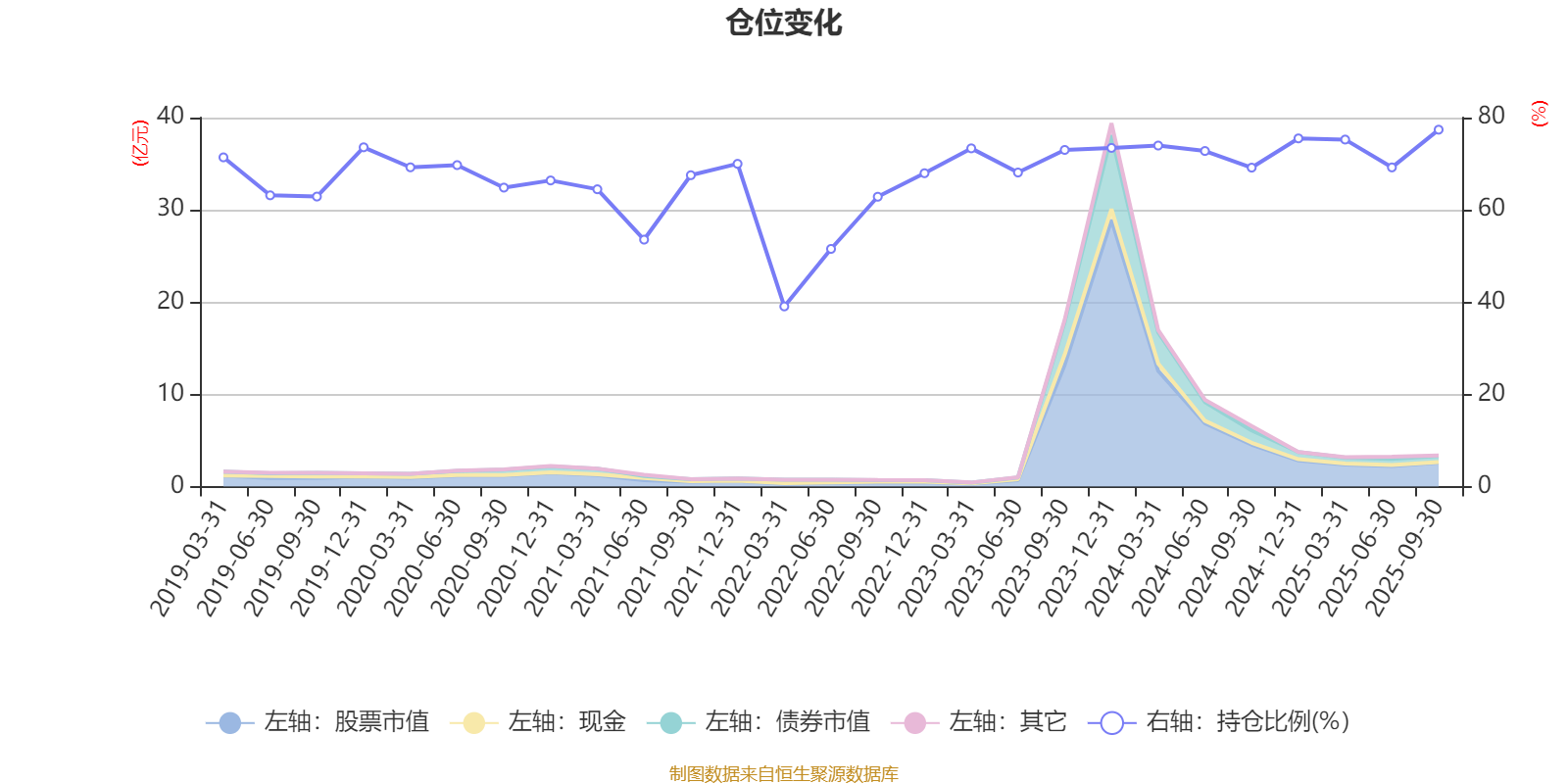 据定期报告数据统计,近三年平均股票仓位为72.41%,同类平均为72.14%。2025年三季度末基金达到77.38%的最高仓位,2022年一季度末最低,为39.06%。