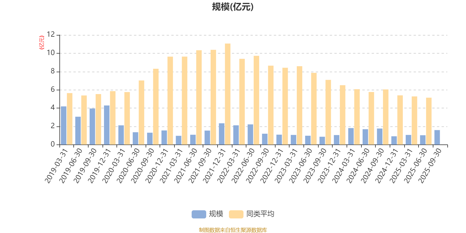 截至9月30日,基金近三年夏普比率为0.1843,位于同类可比基金1045/1285。