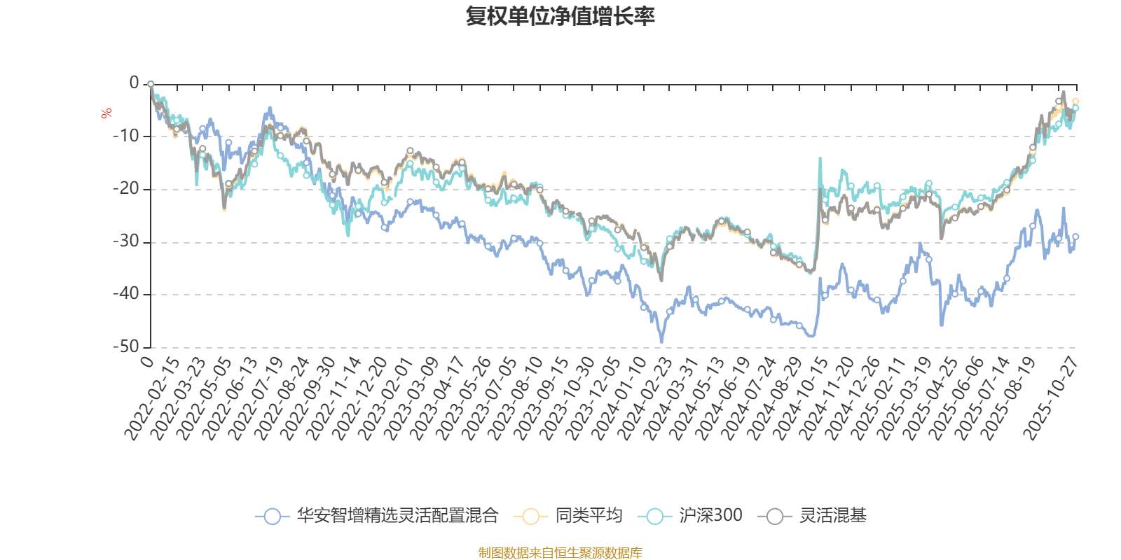 截至10月27日,华安智增精选灵活配置混合近三个月复权单位净值增长率为2.84%,位于同类可比基金1049/1287;近半年复权单位净值增长率为18.06%,位于同类可比基金825/1287;近一年复权单位净值增长率为16.28%,位于同类可比基金788/1287;近三年复权单位净值增长率为-5.79%,位于同类可比基金1085/1286。
