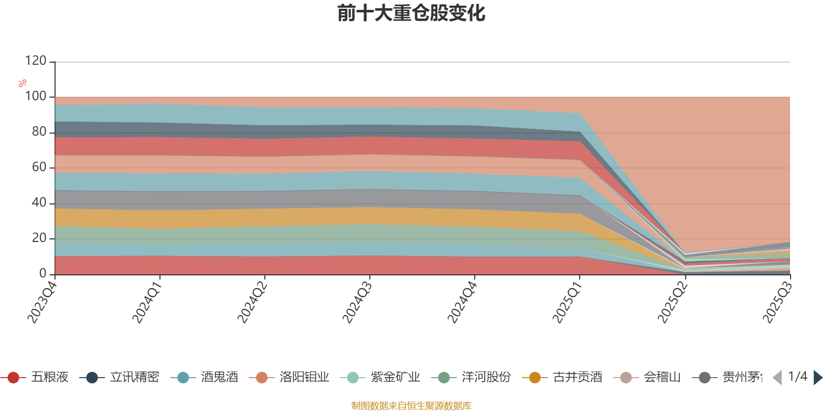 截至2025年三季度末,基金十大重仓股分别是吉比特、工业富联、立讯精密、紫金矿业、宁德时代、药明康德、洛阳钼业、牧原股份、德赛西威、歌尔股份。