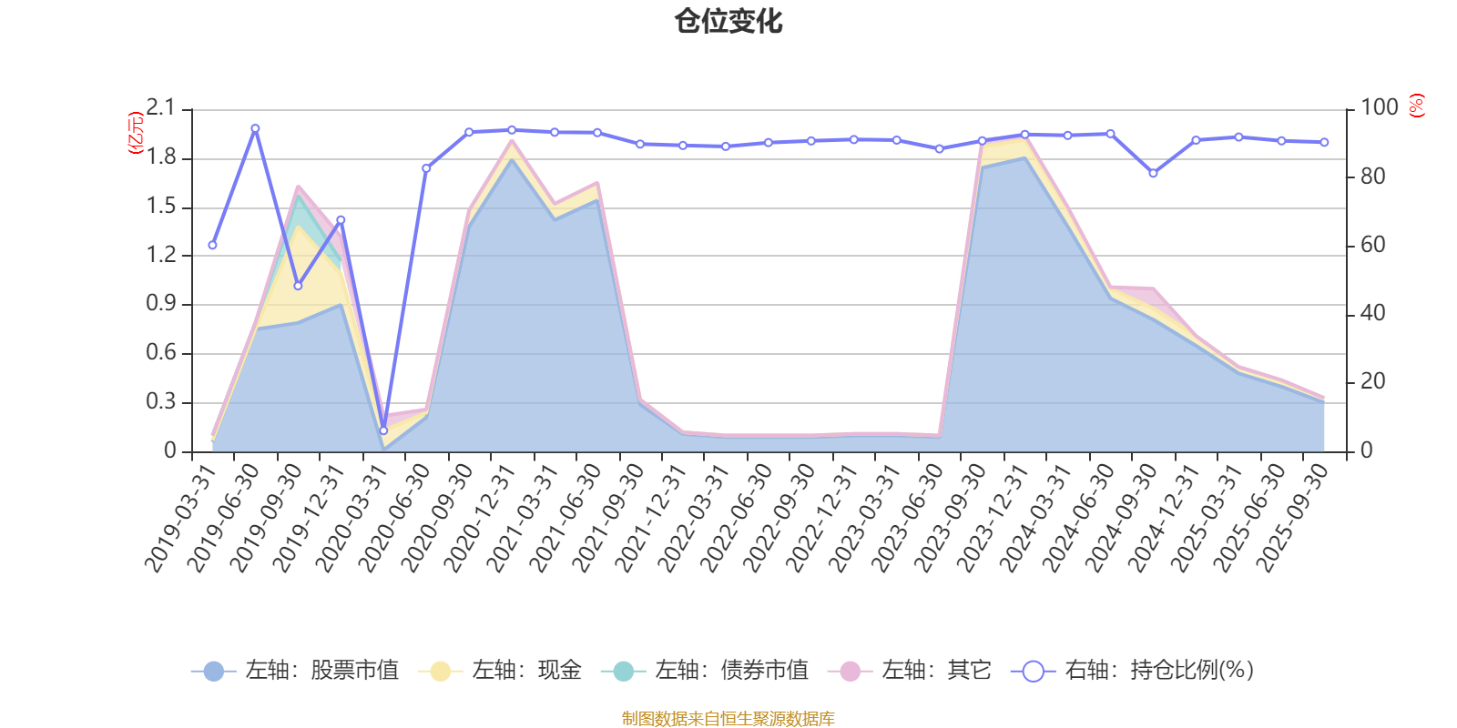 据定期报告数据统计,近三年平均股票仓位为90.37%,同类平均为72.16%。2019年上半年末基金达到94.41%的最高仓位,2020年一季度末最低,为6.19%。