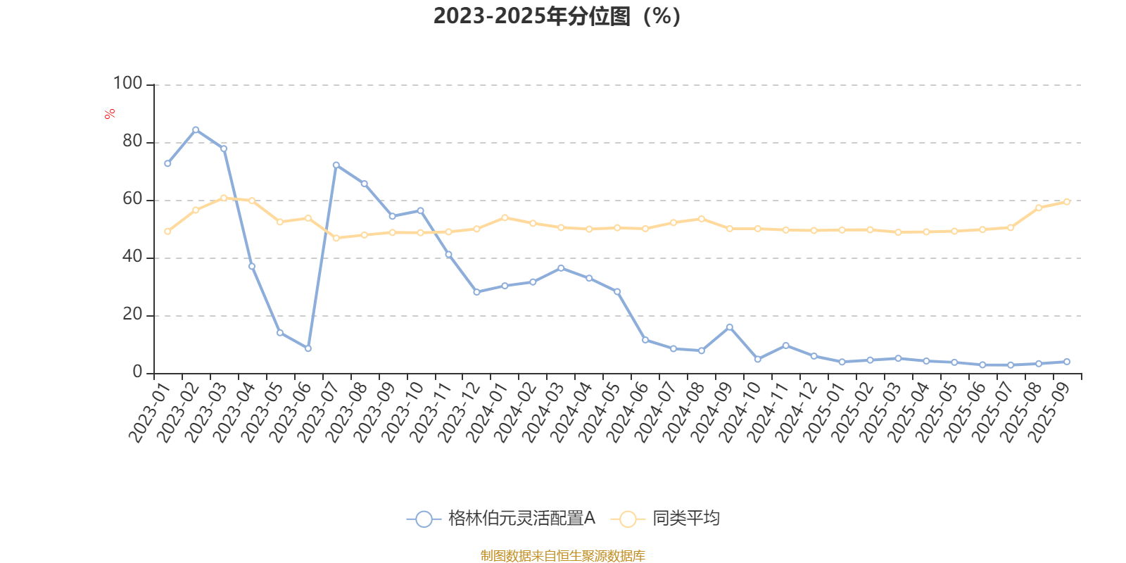 通过所选区间该基金净值增长率分位图,可以观察该基金与同类基金业绩比较情况。图为坐标原点到区间内某时点的净值增长率在同类基金中的分位数。