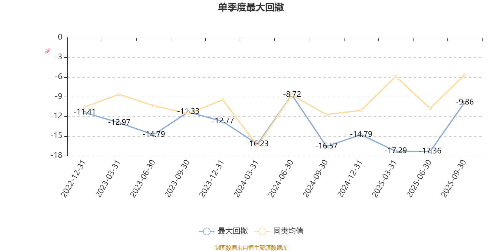 截至10月24日,基金近三年最大回撤为44.51%,同类可比基金排名428/519。单季度最大回撤出现在2025年二季度,为17.36%。