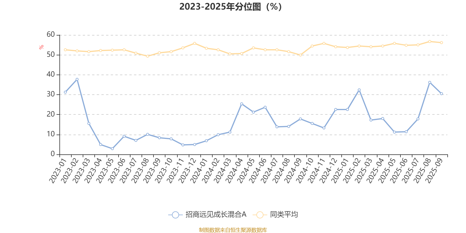 通过所选区间该基金净值增长率分位图,可以观察该基金与同类基金业绩比较情况。图为坐标原点到区间内某时点的净值增长率在同类基金中的分位数。