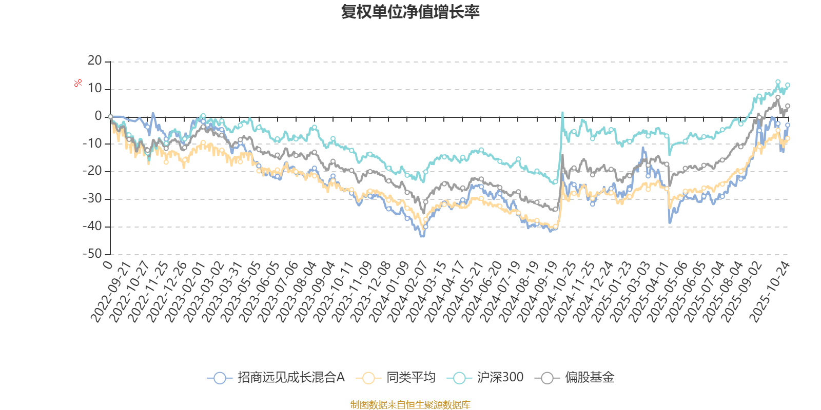 截至10月24日,招商远见成长混合A近三个月复权单位净值增长率为28.74%,位于同类可比基金83/621;近半年复权单位净值增长率为39.54%,位于同类可比基金134/618;近一年复权单位净值增长率为29.22%,位于同类可比基金296/611;近三年复权单位净值增长率为1.04%,位于同类可比基金383/518。