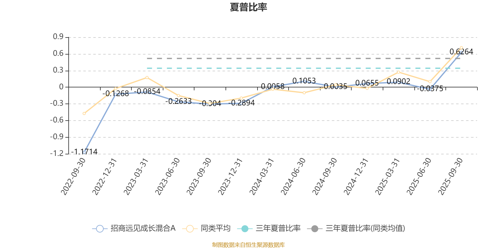 截至9月30日,基金近三年夏普比率为0.3418,位于同类可比基金368/518。