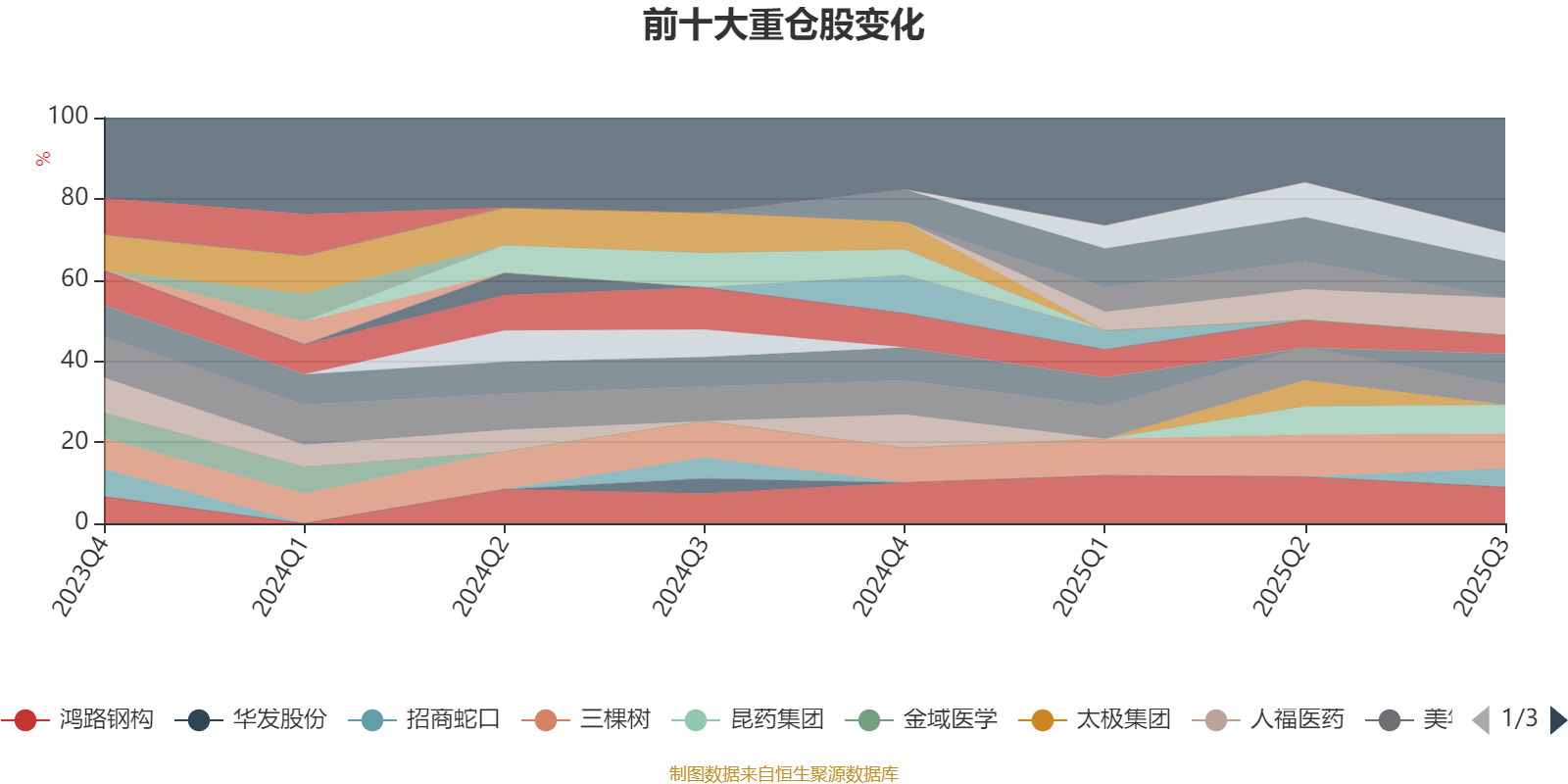 该基金持股集中度较高,近2年前十大重仓股集中度长期超过60%。截至2025年三季度末,基金十大重仓股分别是中矿资源、雅化集团、鸿路钢构、三棵树、东方雨虹、昆药集团、华友钴业、美年健康、招商蛇口、科顺股份。