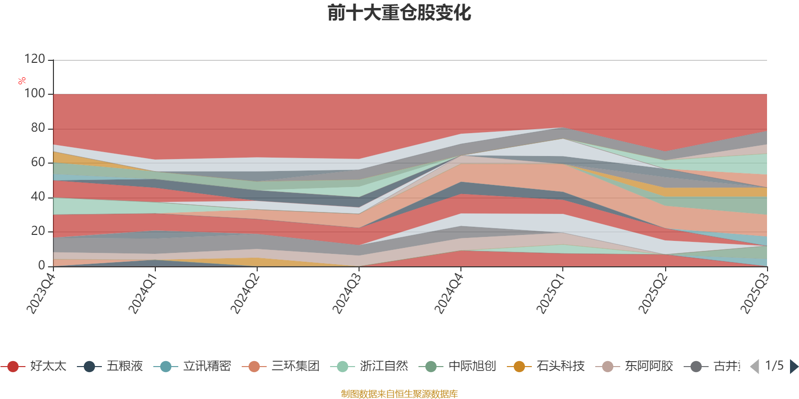 该基金持股集中度较高,近2年前十大重仓股集中度长期超过60%。截至2025年三季度末,基金十大重仓股分别是九号公司、新易盛、渝农商行、水晶光电、工业富联、中际旭创、ST华通、蓝思科技、新乳业、立讯精密。