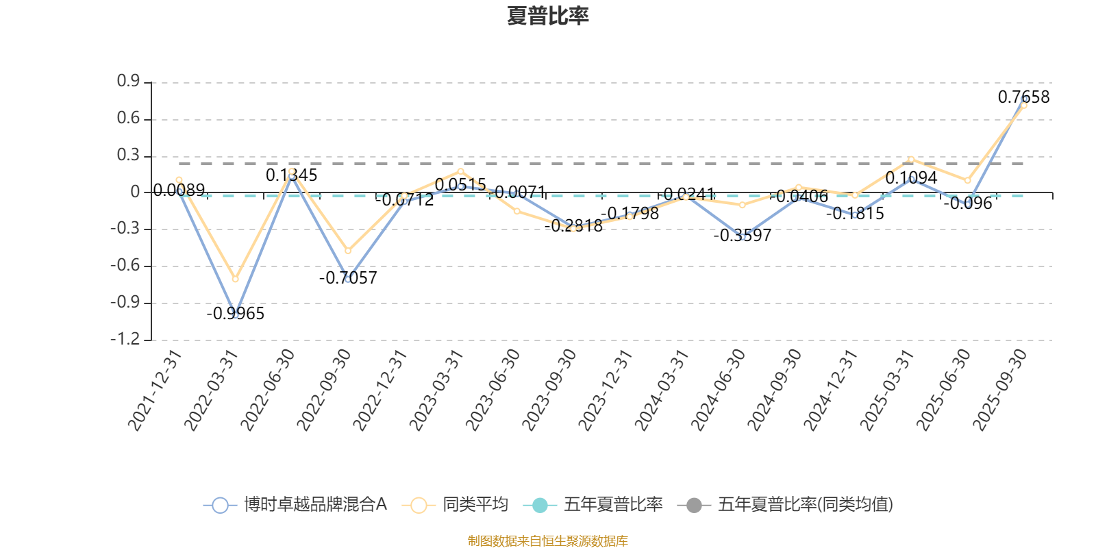 截至9月30日,基金近三年夏普比率为0.1599,位于同类可比基金453/518。