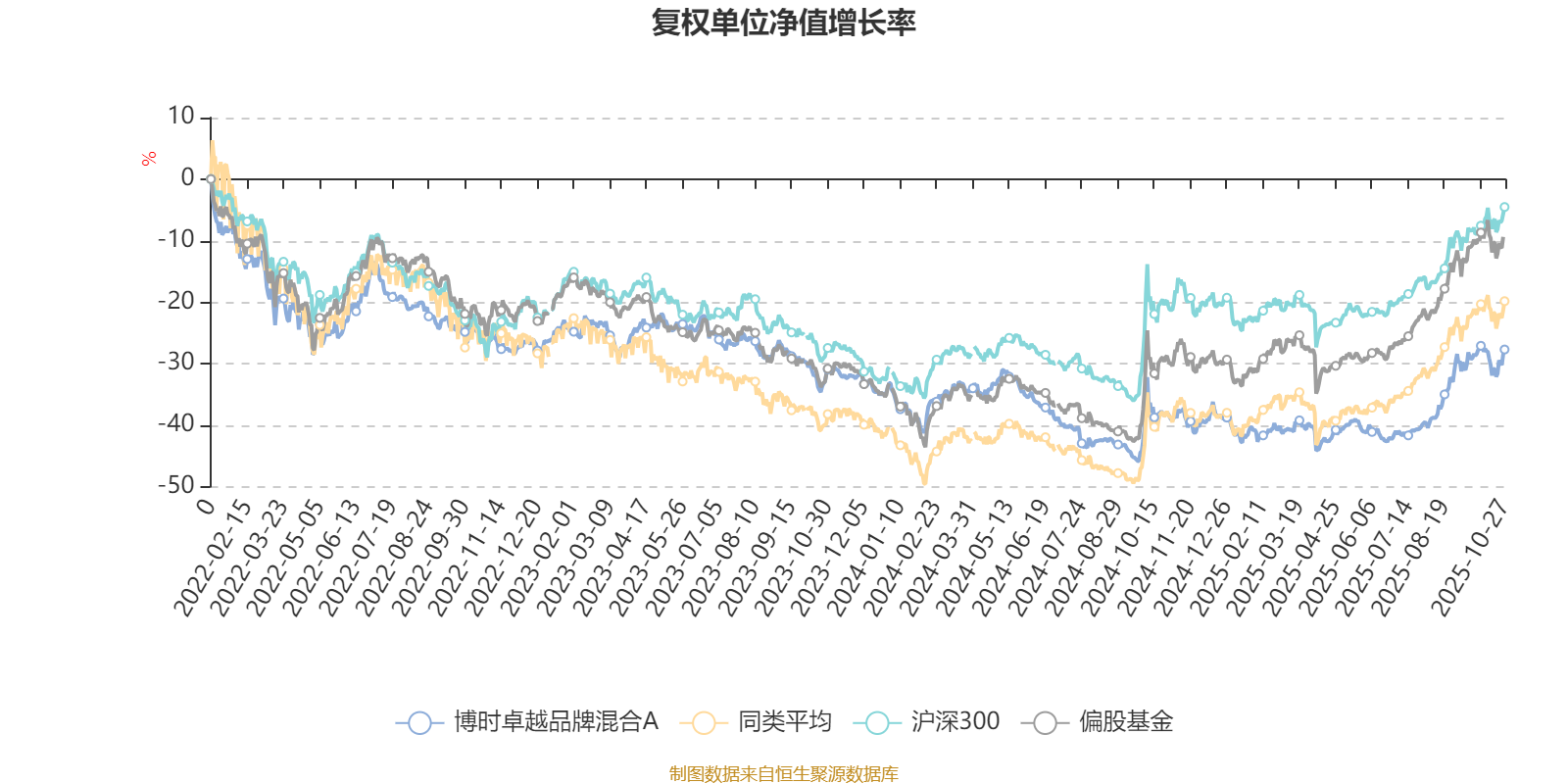 截至10月27日,博时卓越品牌混合A近三个月复权单位净值增长率为21.25%,位于同类可比基金191/621;近半年复权单位净值增长率为22.05%,位于同类可比基金435/619;近一年复权单位净值增长率为17.16%,位于同类可比基金464/611;近三年复权单位净值增长率为-1.56%,位于同类可比基金417/518。