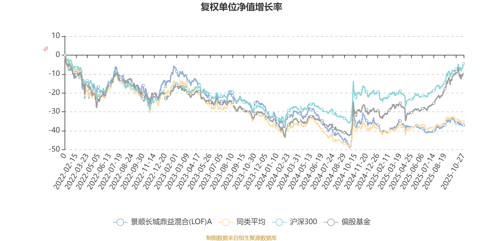 截至10月27日,景顺长城鼎益混合(LOF)A近三个月复权单位净值增长率为1.64%,位于同类可比基金41/85;近半年复权单位净值增长率为2.14%,位于同类可比基金63/85;近一年复权单位净值增长率为-2.56%,位于同类可比基金77/82;近三年复权单位净值增长率为-13.99%,位于同类可比基金64/74。