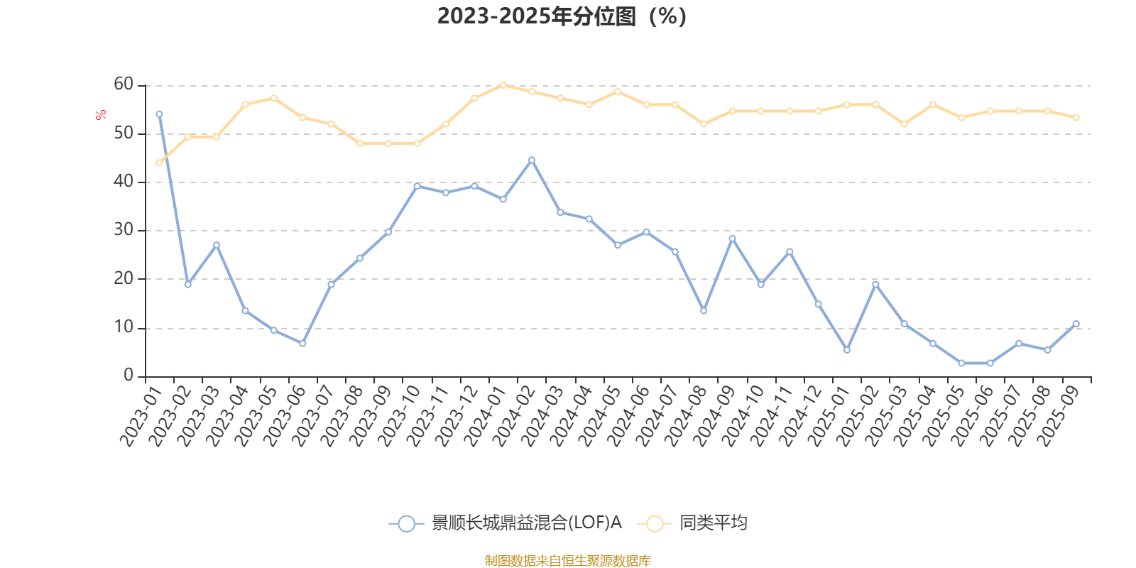 通过所选区间该基金净值增长率分位图,可以观察该基金与同类基金业绩比较情况。图为坐标原点到区间内某时点的净值增长率在同类基金中的分位数。