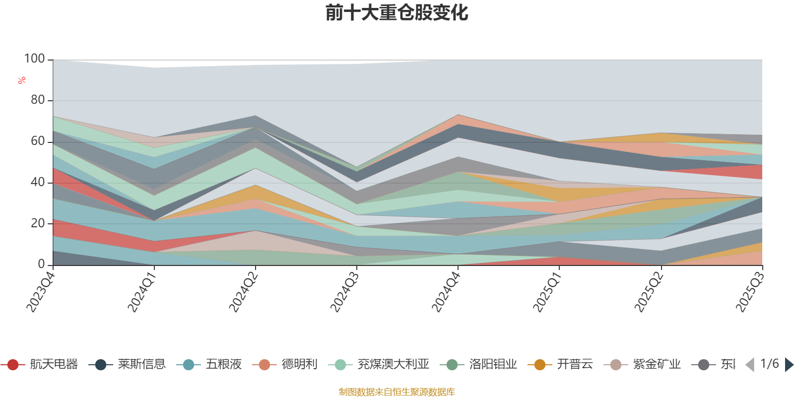 截至2025年三季度末,基金十大重仓股分别是阿里巴巴-W、ST华通、招金矿业、巨化股份、德明利、腾讯控股、山东黄金、中远海能、兆易创新、开普云。