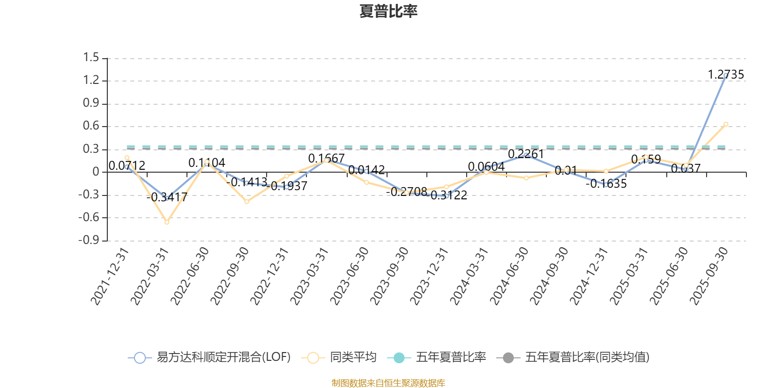 截至9月30日,基金近三年夏普比率为0.6178,位于同类可比基金514/1285。