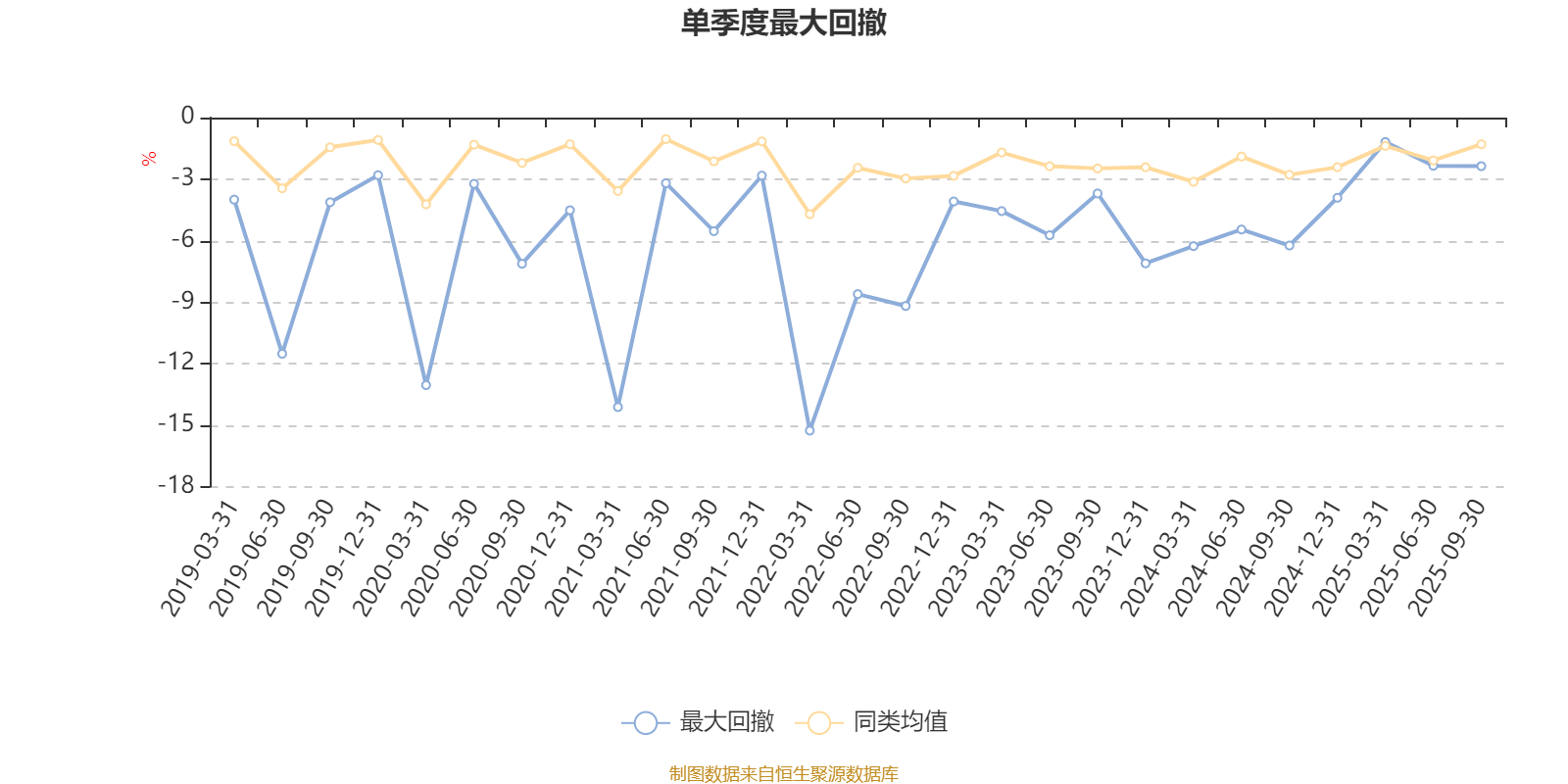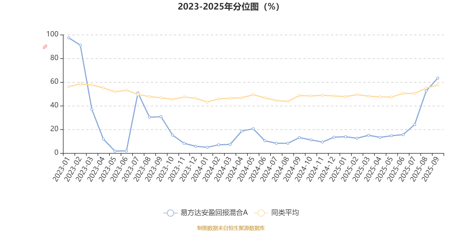 通过所选区间该基金净值增长率分位图,可以观察该基金与同类基金业绩比较情况。图为坐标原点到区间内某时点的净值增长率在同类基金中的分位数。