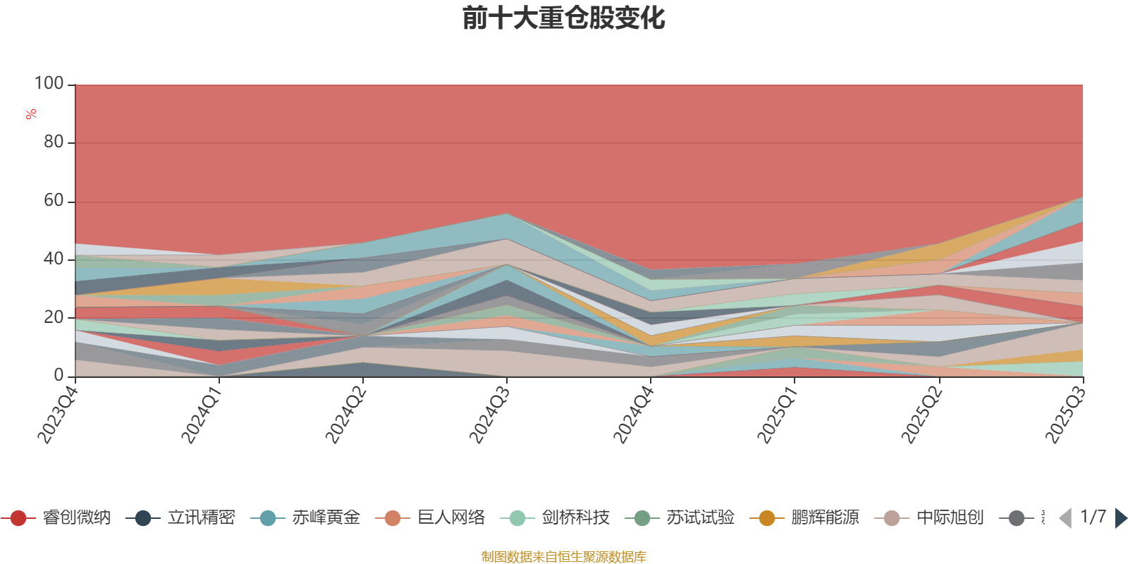 截至2025年三季度末,基金十大重仓股分别是中际旭创、新易盛、工业富联、天孚通信、亿纬锂能、源杰科技、剑桥科技、沪电股份、胜宏科技、鹏辉能源。