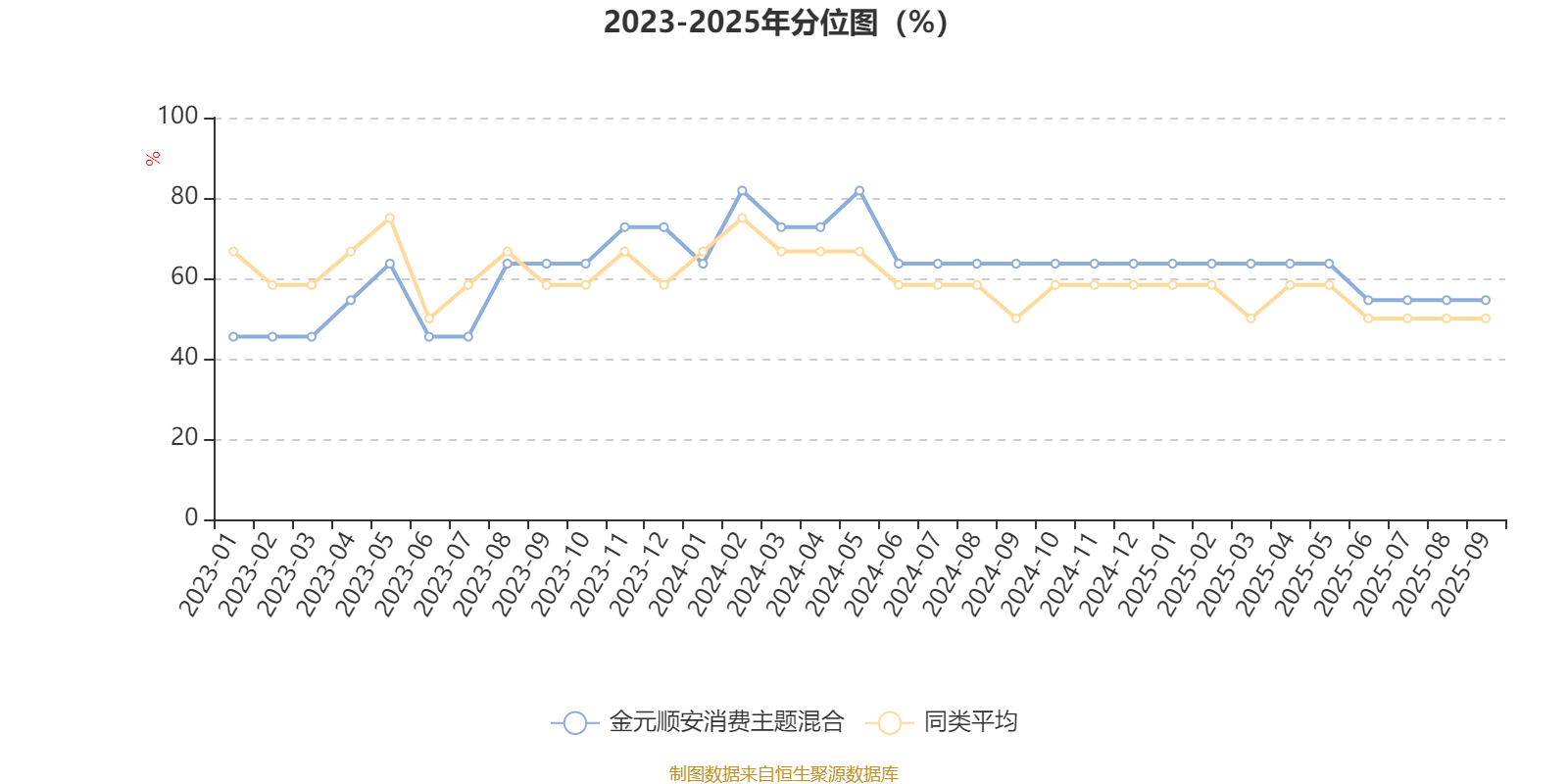 通过所选区间该基金净值增长率分位图,可以观察该基金与同类基金业绩比较情况。图为坐标原点到区间内某时点的净值增长率在同类基金中的分位数。