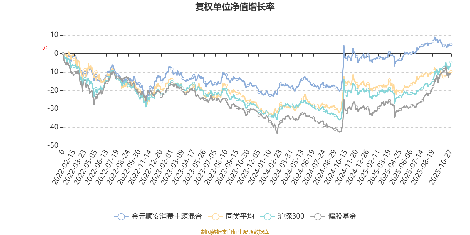 截至10月27日,金元顺安消费主题混合近三个月复权单位净值增长率为-0.04%,位于同类可比基金9/16;近半年复权单位净值增长率为8.39%,位于同类可比基金13/16;近一年复权单位净值增长率为7.14%,位于同类可比基金10/14;近三年复权单位净值增长率为39.18%,位于同类可比基金5/12。