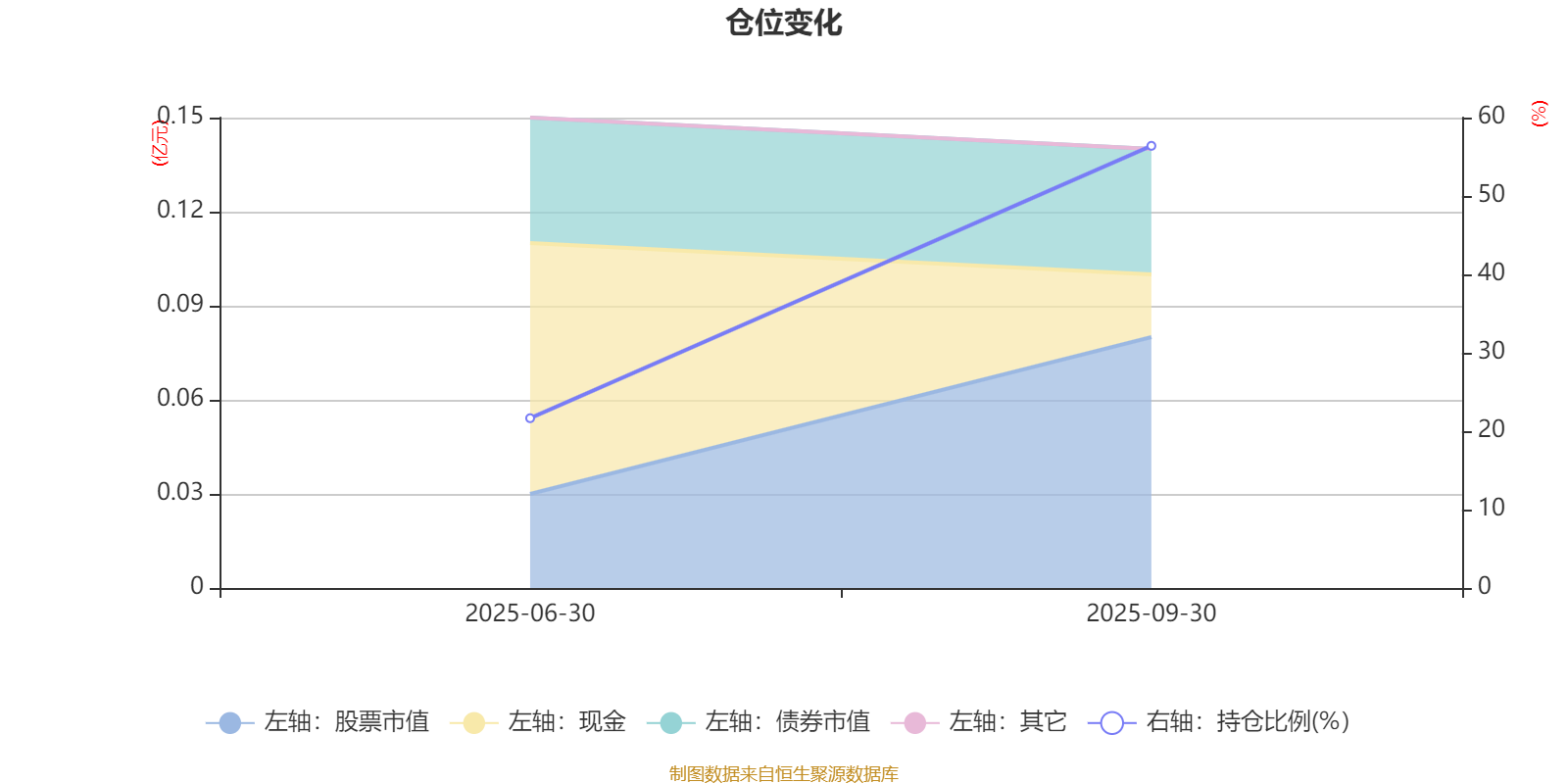 据定期报告数据统计,成立以来平均股票仓位为39.03%,同类平均为67.21%。2025年三季度末基金达到56.4%的最高仓位,2025年上半年末最低,为21.66%。
