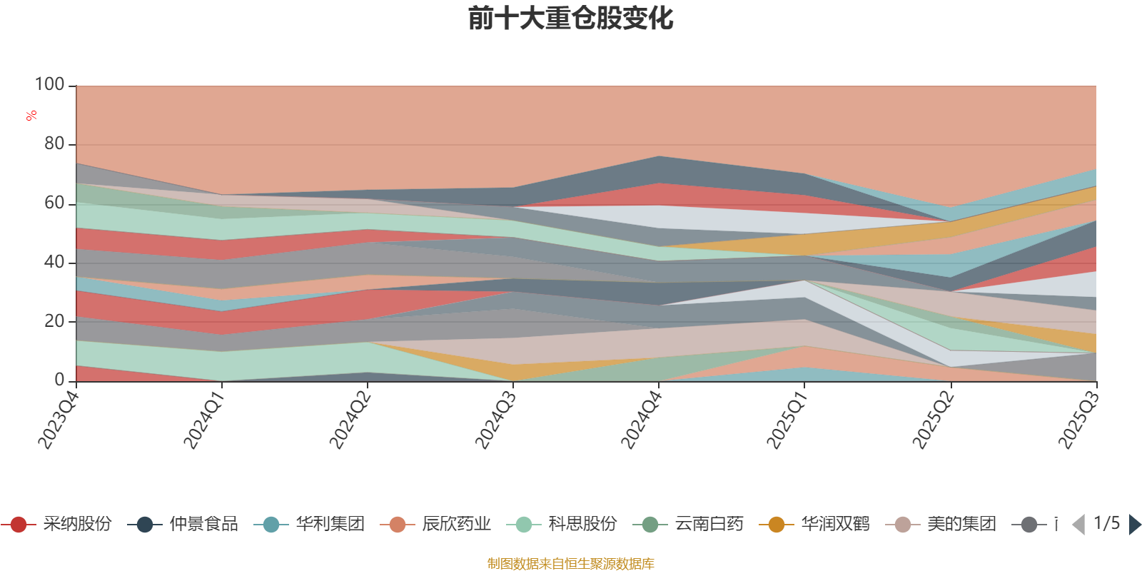 该基金持股集中度较高。截至2025年三季度末,基金十大重仓股分别是南微医学、安琪酵母、我武生物、英科医疗、马应龙、齐鲁银行、三友医疗、国药股份、广信股份、中集车辆。