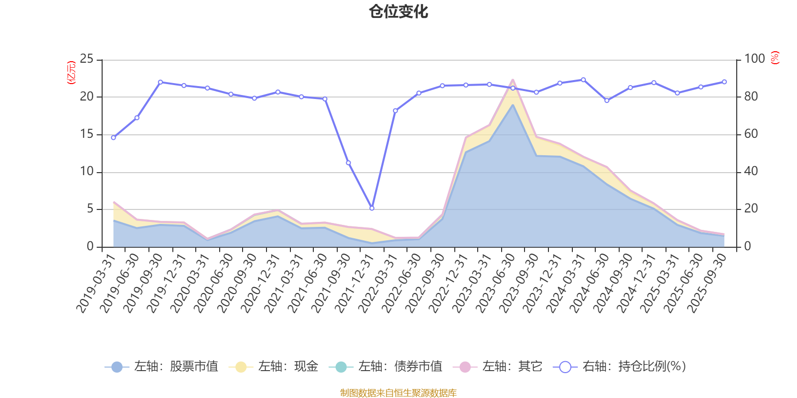 据定期报告数据统计,近三年平均股票仓位为85.38%,同类平均为72.17%。2024年一季度末基金达到89.3%的最高仓位,2021年末最低,为20.72%。