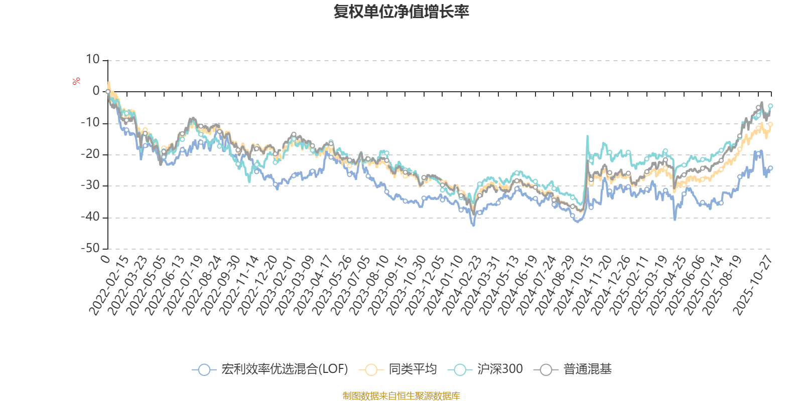 截至10月27日,宏利效率优选混合(LOF)近三个月复权单位净值增长率为12.04%,位于同类可比基金64/134;近半年复权单位净值增长率为12.21%,位于同类可比基金97/134;近一年复权单位净值增长率为16.77%,位于同类可比基金75/130;近三年复权单位净值增长率为-4.79%,位于同类可比基金103/119。