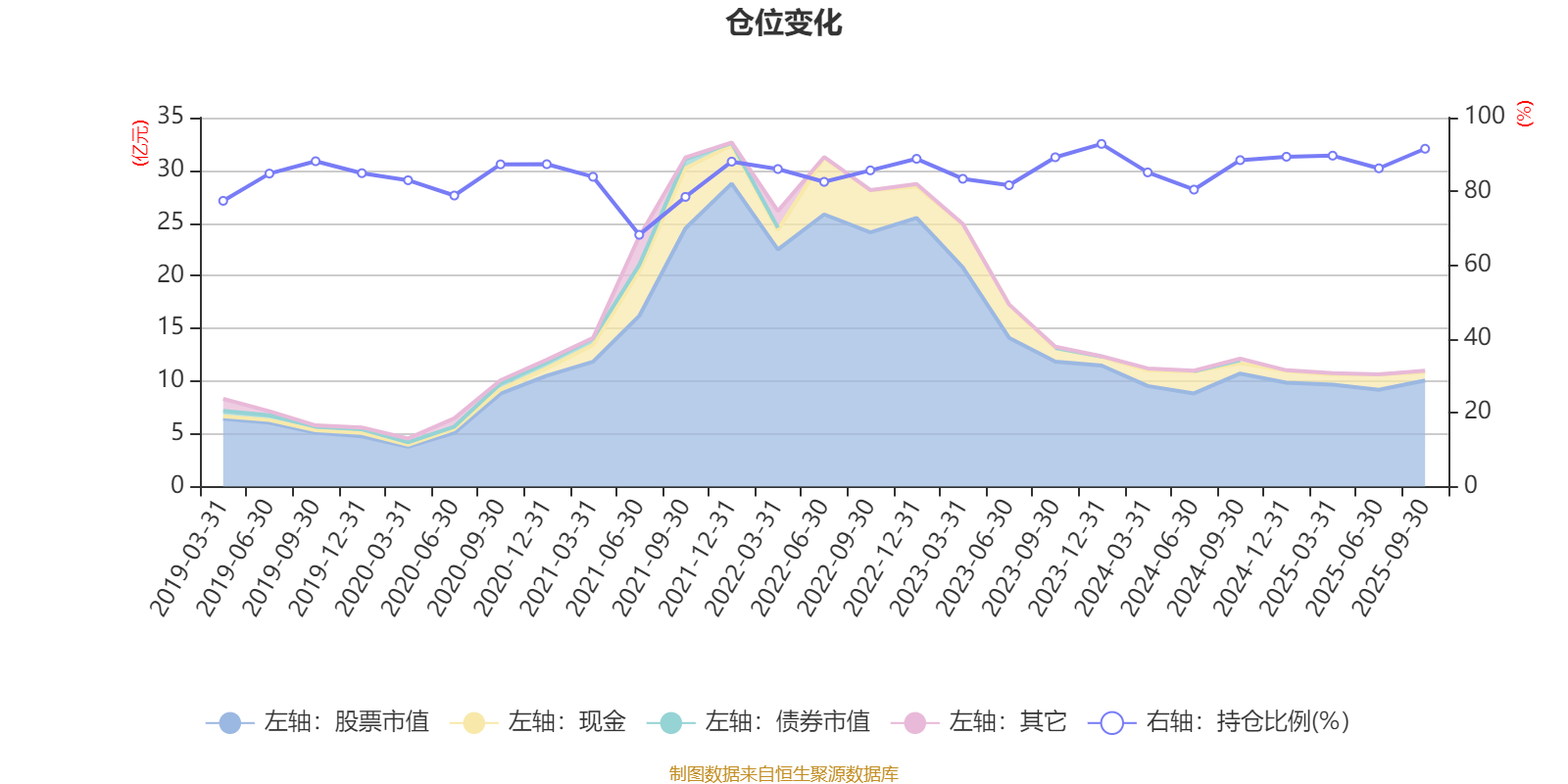 据定期报告数据统计,近三年平均股票仓位为87.25%,同类平均为72.16%。2023年末基金达到92.87%的最高仓位,2021年上半年末最低,为68.24%。
