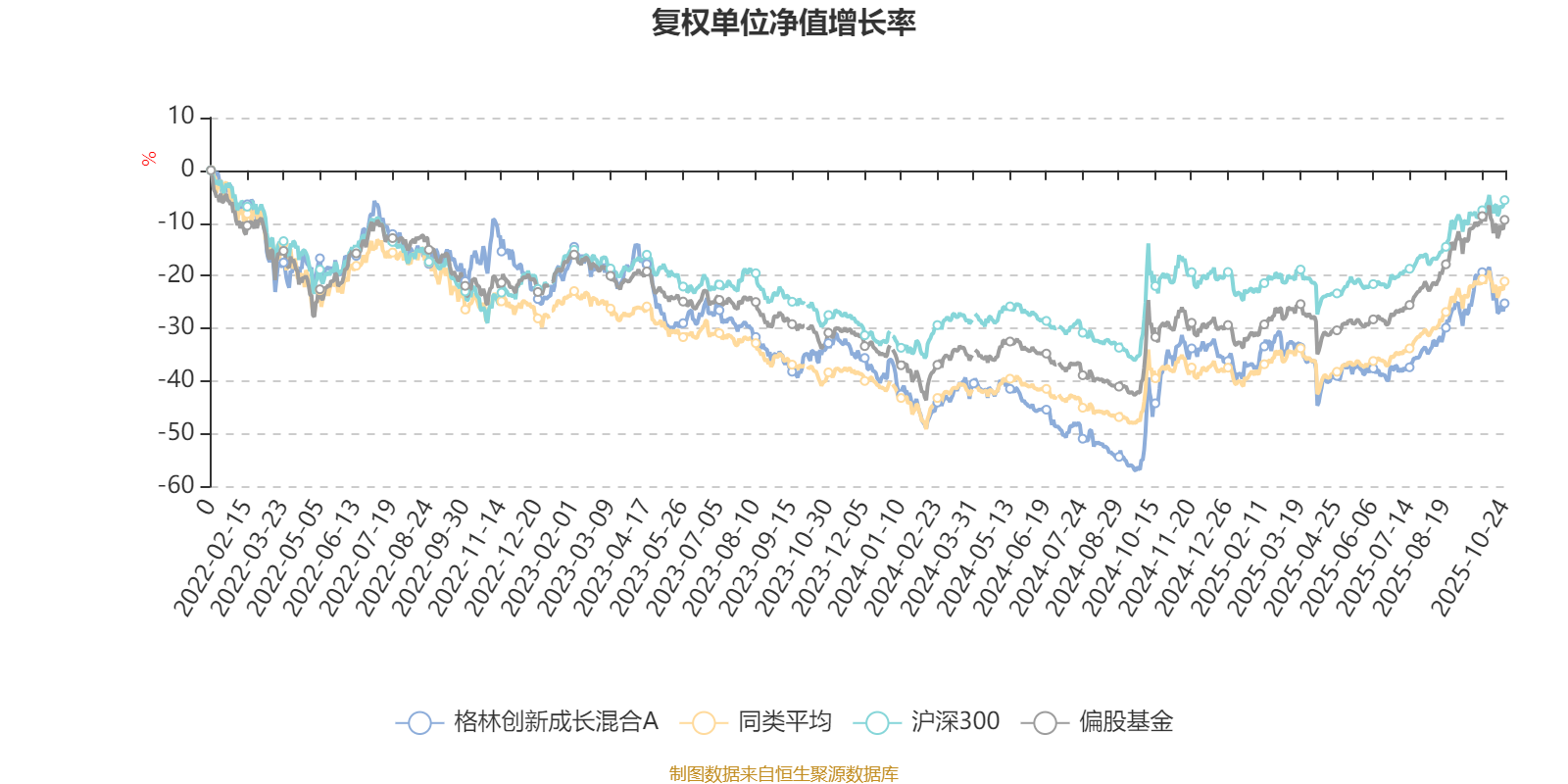 截至10月24日,格林创新成长混合A近三个月复权单位净值增长率为14.47%,位于同类可比基金299/689;近半年复权单位净值增长率为22.98%,位于同类可比基金399/688;近一年复权单位净值增长率为20.08%,位于同类可比基金428/653;近三年复权单位净值增长率为-8.89%,位于同类可比基金293/363。