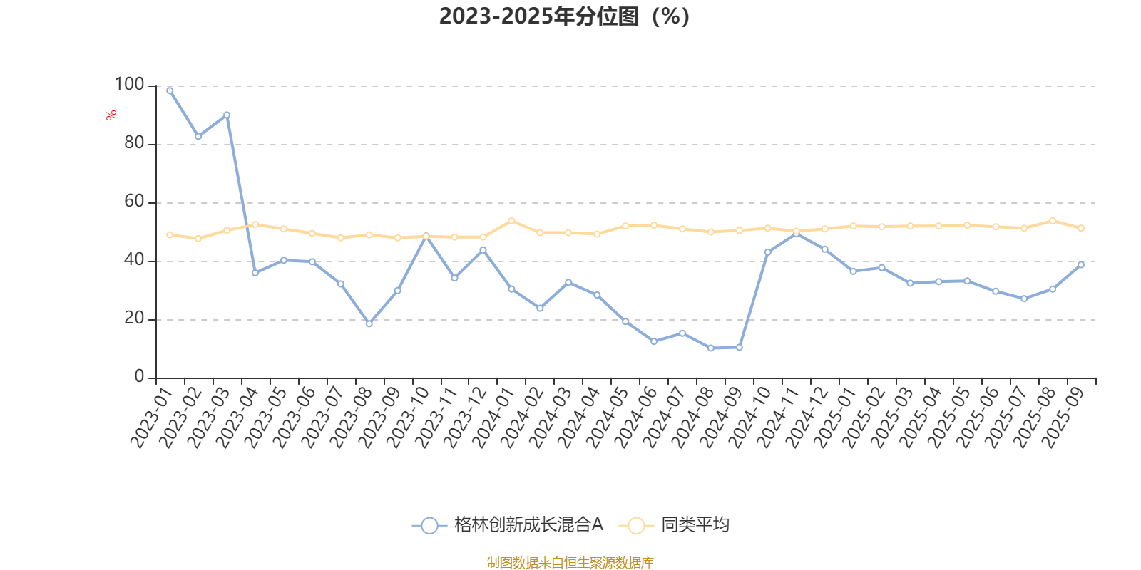 通过所选区间该基金净值增长率分位图,可以观察该基金与同类基金业绩比较情况。图为坐标原点到区间内某时点的净值增长率在同类基金中的分位数。