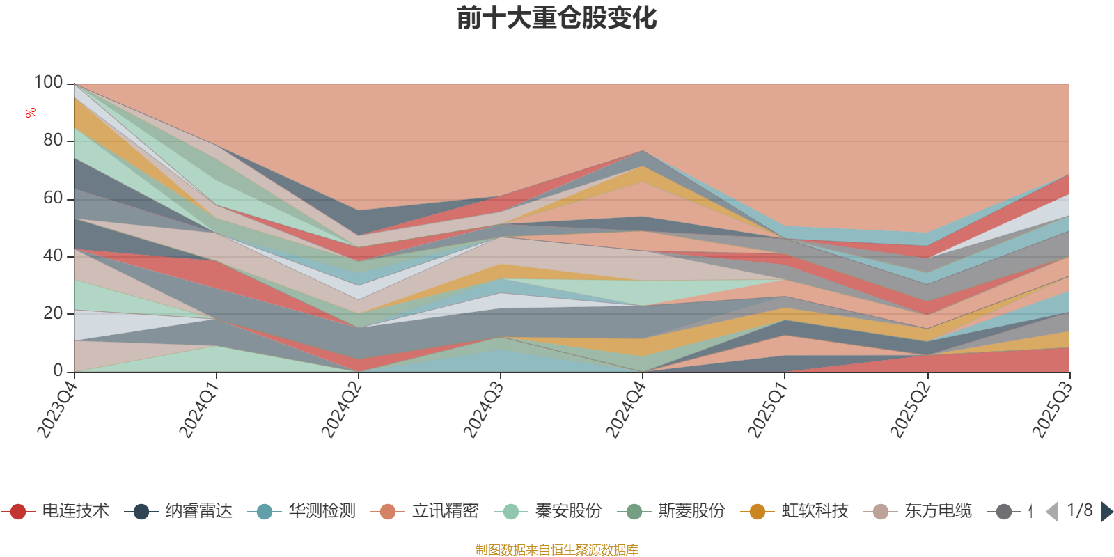截至2025年三季度末,基金十大重仓股分别是德赛西威、电连技术、星宇股份、锐明技术、中国汽研、永新光学、伯特利、虹软科技、经纬恒润、宇瞳光学。