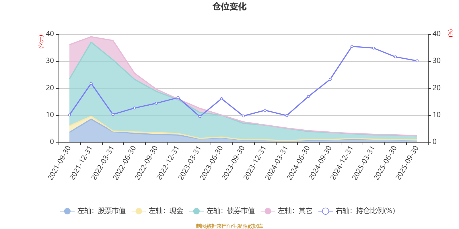 据定期报告数据统计,近三年平均股票仓位为20.5%,同类平均为19.03%。2024年末基金达到35.55%的最高仓位,2023年一季度末最低,为9.48%。