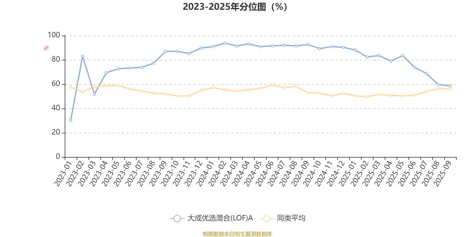 通过所选区间该基金净值增长率分位图,可以观察该基金与同类基金业绩比较情况。图为坐标原点到区间内某时点的净值增长率在同类基金中的分位数。