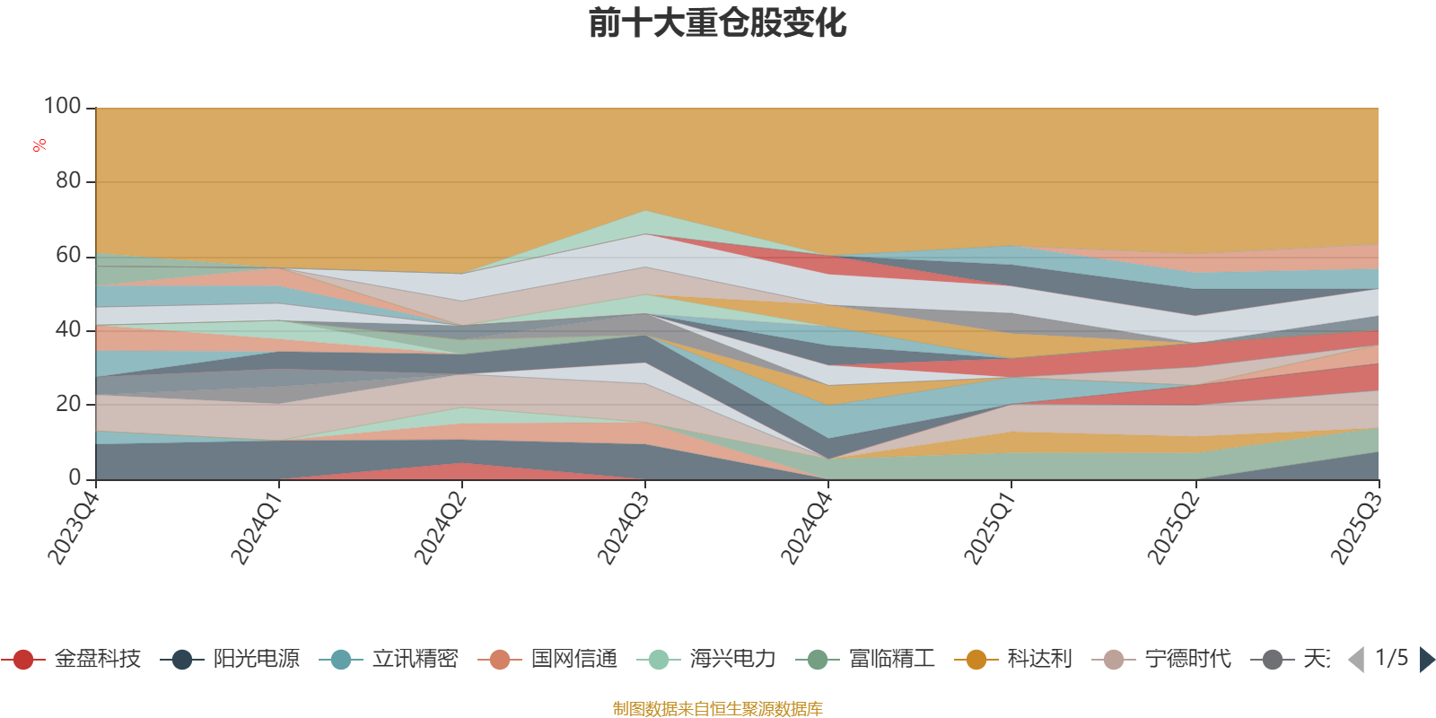 该基金持股集中度较高。截至2025年三季度末,基金十大重仓股分别是宁德时代、阳光电源、协鑫科技、厦钨新能、华友钴业、富临精工、博迁新材、汇川技术、信捷电气、上海洗霸。