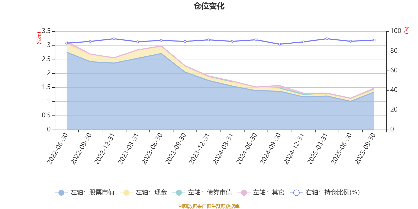 据定期报告数据统计,近三年平均股票仓位为90.41%,同类平均为87%。2025年一季度末基金达到92.48%的最高仓位,2024年三季度末最低,为86.94%。